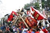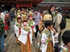 平家一門の厳島神社詣行列を再現。厳島神社から清盛神社まで、修験者や武者、公達など平安衣装をまとった人々が列をなし、平安絵巻を思わせる雅な行列が行進する。その他、舞楽や吹奏楽隊パレードなどがあり、祭りを盛り上げる。昔、はっちゃんも参加しました。